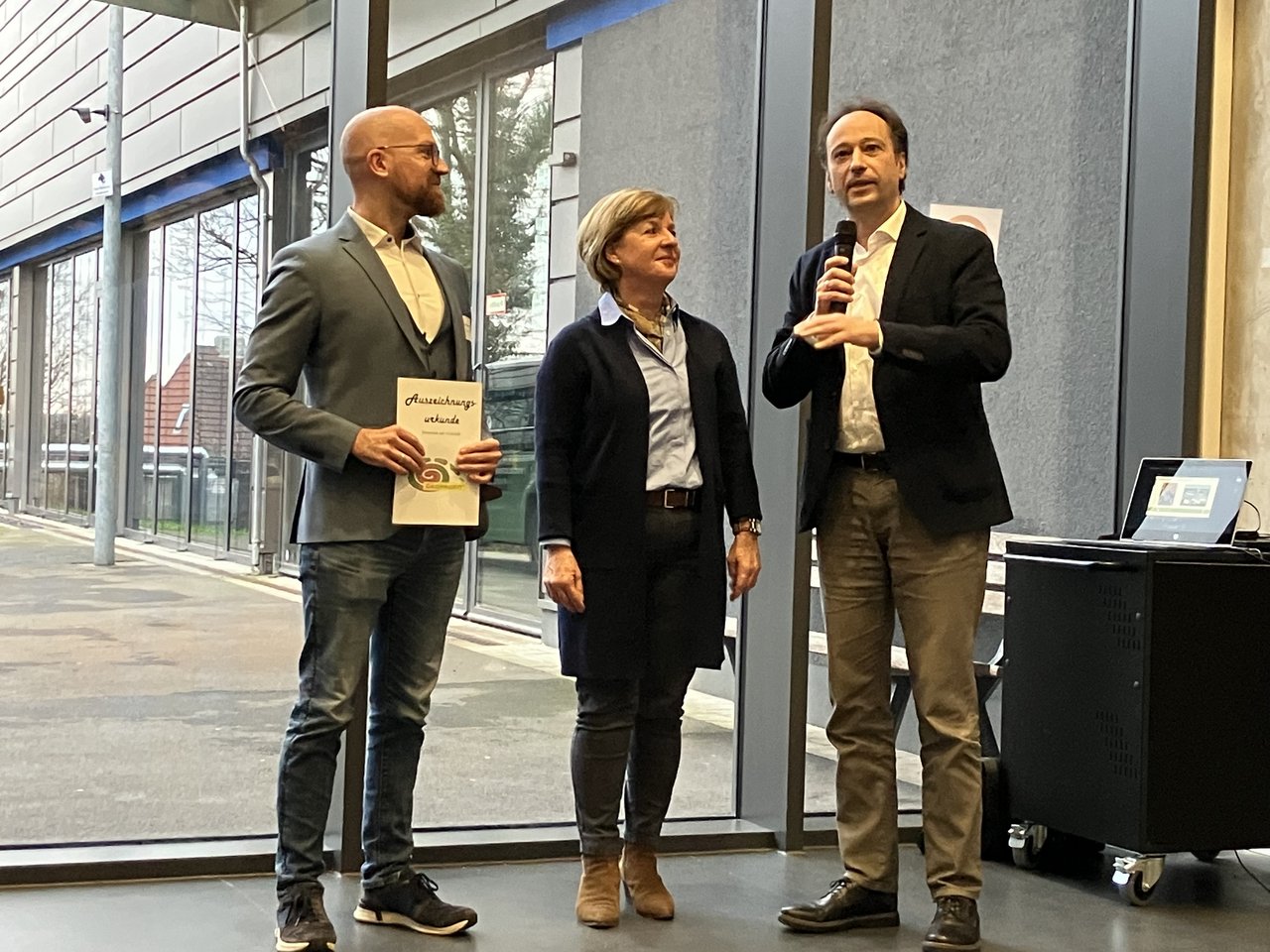 Nicht nur als Bürgermeister, sondern auch als Vorsitzender des Ausschusses u.a. für Klima und Umwelt war für Thilo Schnor die Auszeichnungsveranstaltung Ökoprofit im Bergischen Städtedreieck eine besondere Veranstaltung. Sie fand diesmal in Remscheid statt. Mit dem BZI, dem Kompetenzcampus Technik und Wirtschaft, fiel der Veranstaltungsort zusammen mit einer auszuzeichnenden Institution. Gemeinsam mit den jeweiligen Vertreter*innen aus Wuppertal und Remscheid wurden insgesamt jeweils drei auszuzeichnende Unternehmen und Vereine aus den drei Städten geehrt. Im Zeitraum eines Jahres stellten sich die Teilnehmenden der Aufgabe, Energie und Ressourcen einzusparen und die dafür notwendigen Investitionen zu tätigen und umzusetzen. Für den erkrankten Oberbürgermeister Mast-Weisz aus Remscheid nahmen die Beigeordneten Frau Reul-Nocke und Herr Heinze, für Wuppertal Oberbürgermeister Uwe Schneidewind die Auszeichnungen vor. Für Solingen überreichte Bürgermeister Thilo Schnor die Urkunden.