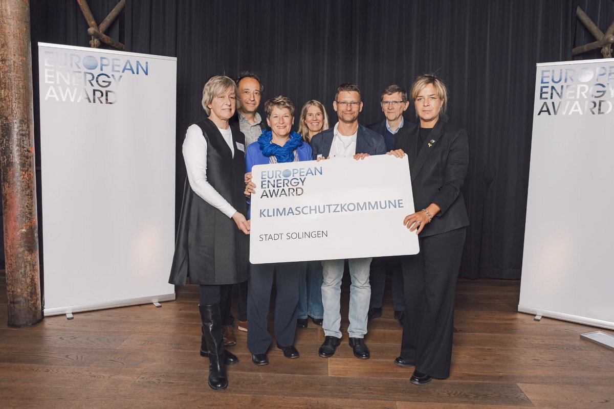 Solingen kann gratuliert werden. Erneut wurde nach erfolgreichem Audit der European-Energie-Award, kurz EEA-Preis, an die Stadt verliehen. Am 8. Mai 2025 haben Ariane Bischoff und Sven Heuermann für den Stab Nachhaltigkeit und Klimaschutz sowie Bürgermeister Thilo Schnor (Grüne) in Düsseldorf die entsprechende Urkunde aus den Händen der stellvertretenden Ministerpräsidentin NRW und Ministerin für Wirtschaft, Industrie, Klimaschutz und Energie, Mona Neubaur, erhalten. Damit kann sich Solingen auch weitere vier Jahre EEA Energie- und Klimaschutzkommune nennen.