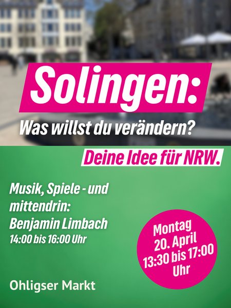Wir GRÜNE wollen es genau wissen und gemeinsam mit dir unser Land gestalten und noch besser für alle Menschen machen. Und deshalb wollen wir auch mit deinen Ideen für NRW unser Wahlprogramm für die Landtagswahl im Frühjahr 2027 entwickeln. Wir gehen auf Tour durchs ganze Land und machen Halt in vielen Städten und Gemeinden. Komm vorbei und sprich direkt und persönlich mit uns darüber, welche Ideen du für NRW hast.