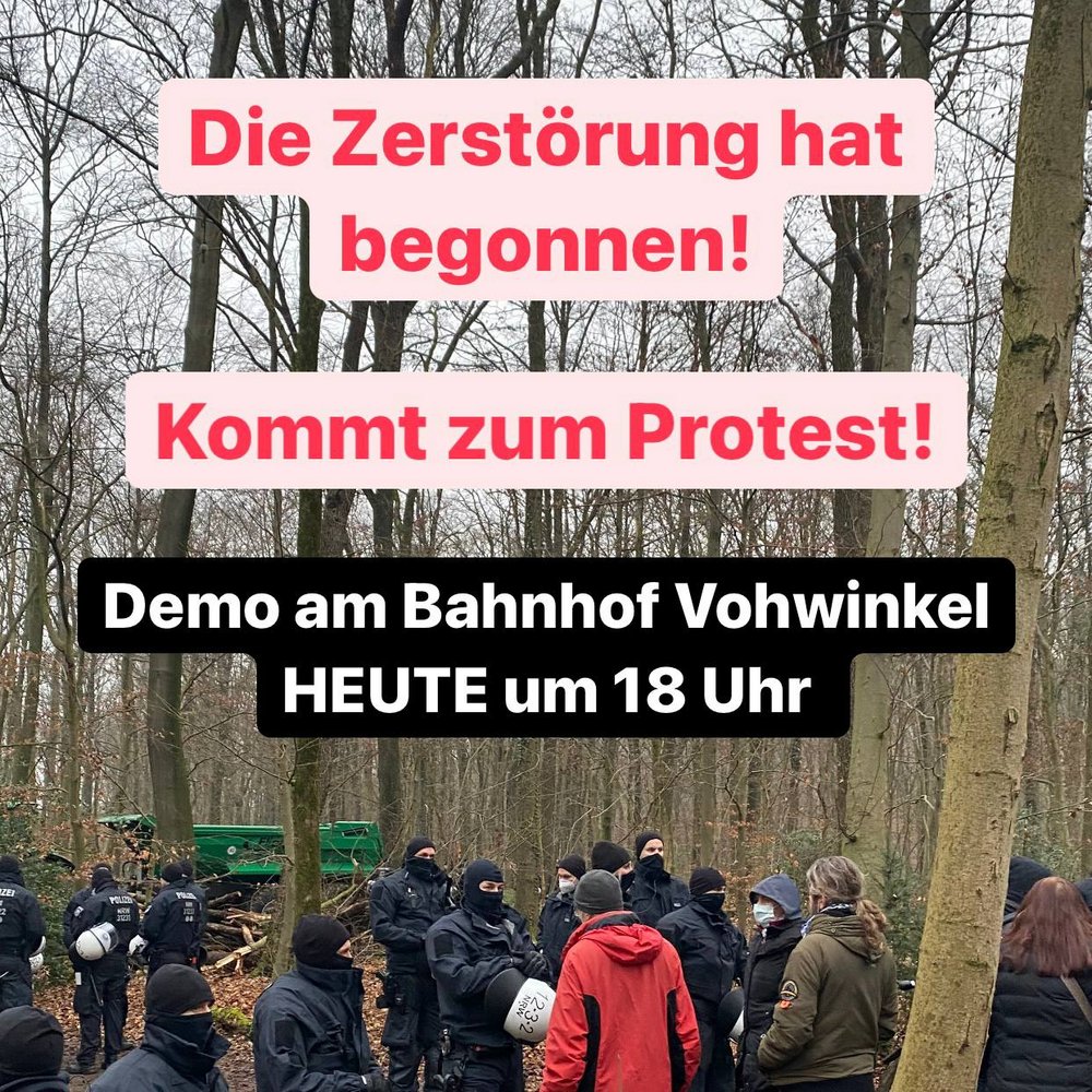 Die Grünen rufen dazu auf, an der heute um 18 Uhr in Wuppertal-Vohwinkel (Bahnhofsvorplatz) stattfindenden Demo gegen die Abholzung des Waldes teilzunehmen und wir fordern, die Rodung zu stoppen und die Suche nach Alternativstandorten ernsthaft fortzusetzen!