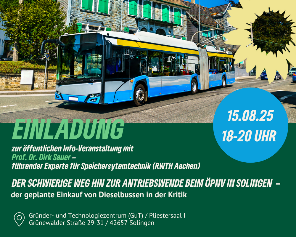 Ökologisch ist das dringend geboten, der Verkehr ist nach wie vor einer der größten CO2-Emittenten in Deutschland. Auch der Busverkehr sollte die Antriebswende vornehemen. Zur Unterstützung finanzklammer Kommunen gibt es Millionenschwere Förderprogramme, die allerdings in Solingen nicht greifen. Warum?